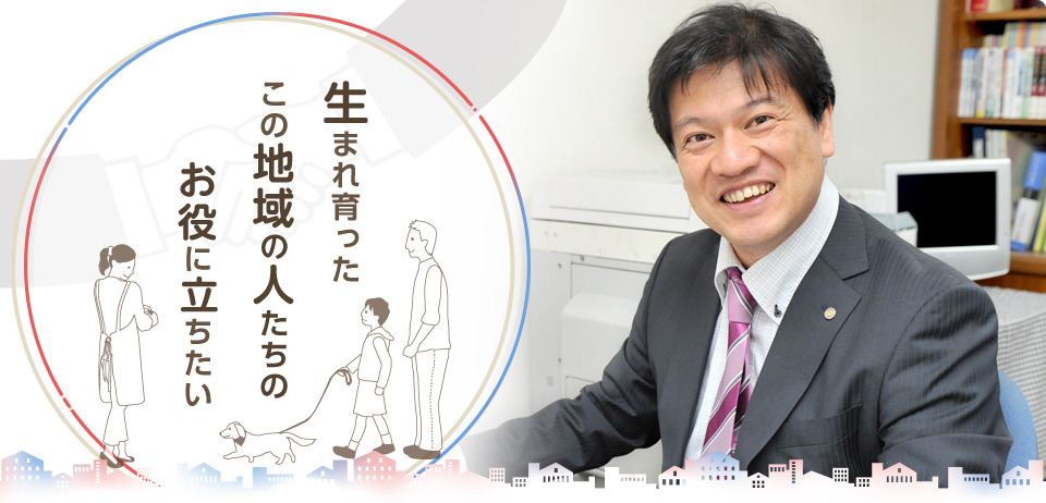蟹江町で生まれ育ち、ふるさと蟹江町への愛着はひとしおです。司法書士業を通して、地元に貢献したいと常に願っています。ですから法律問題にかかわらず、困り事はなんでもご相談ください。「まちの司法書士」「まちの相談所」が私の理想です。